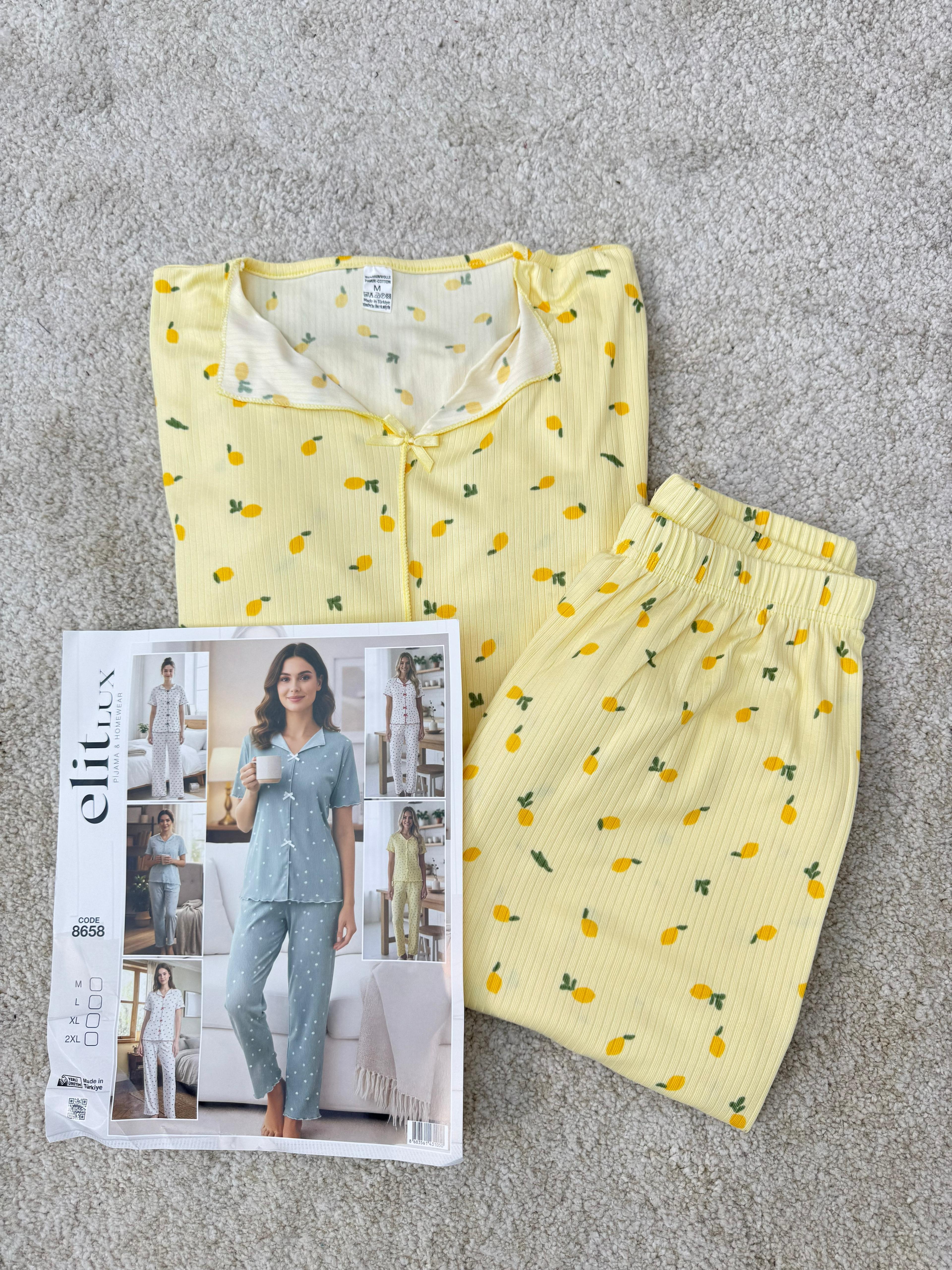 ç8658-milan kumaş kısa kollu pijama takımı-sarı (ç8658)