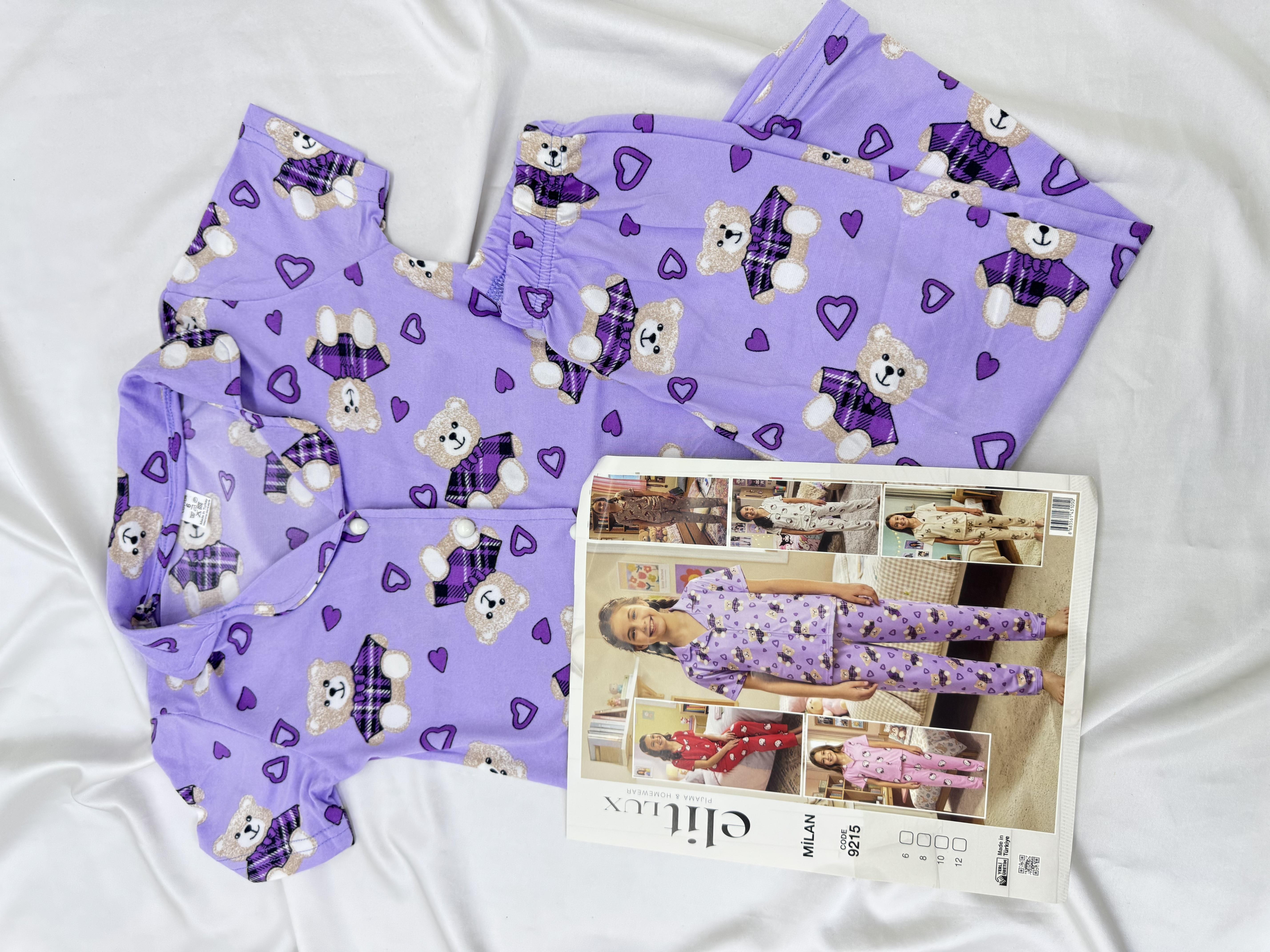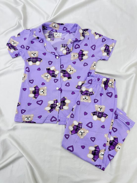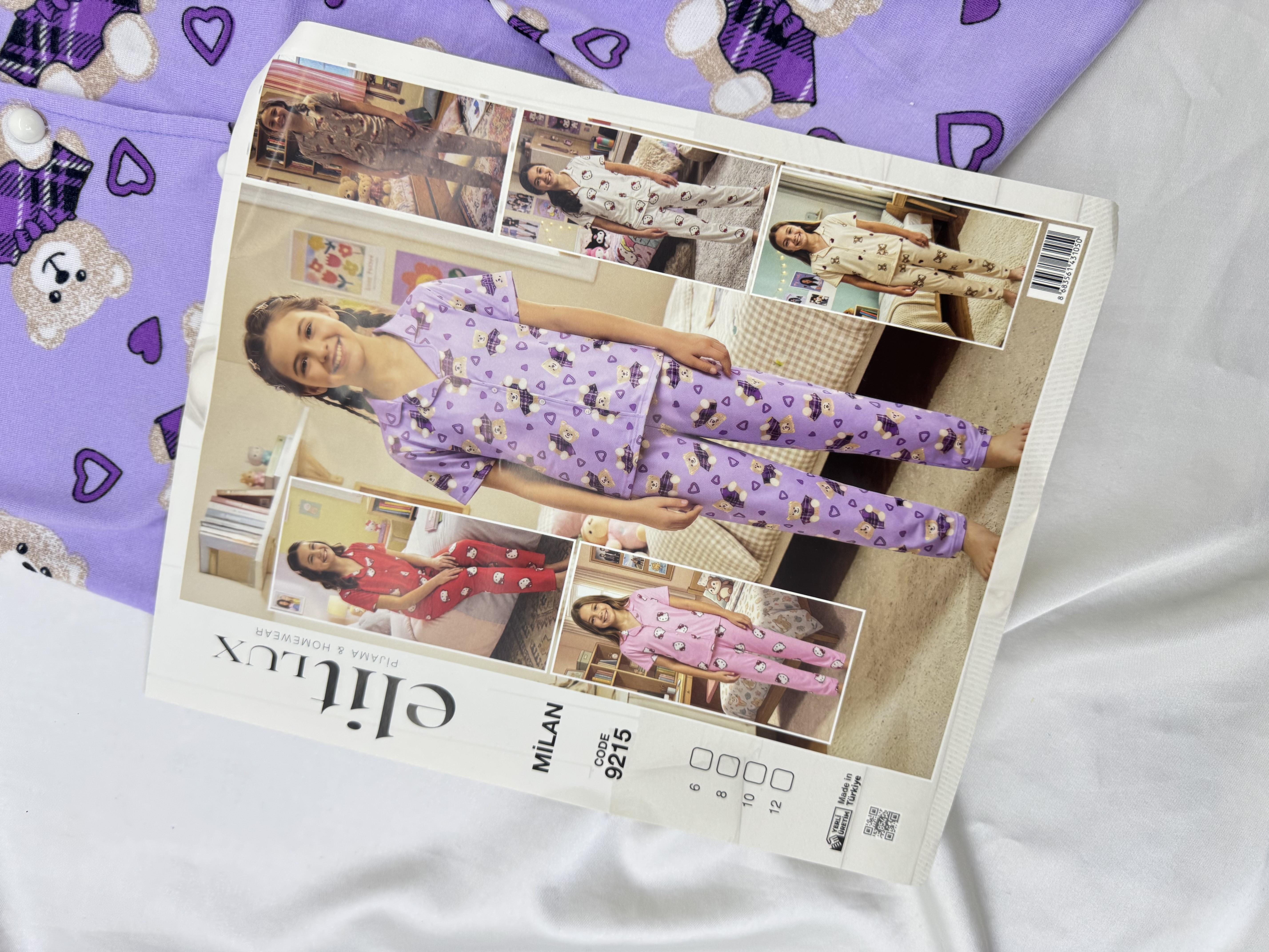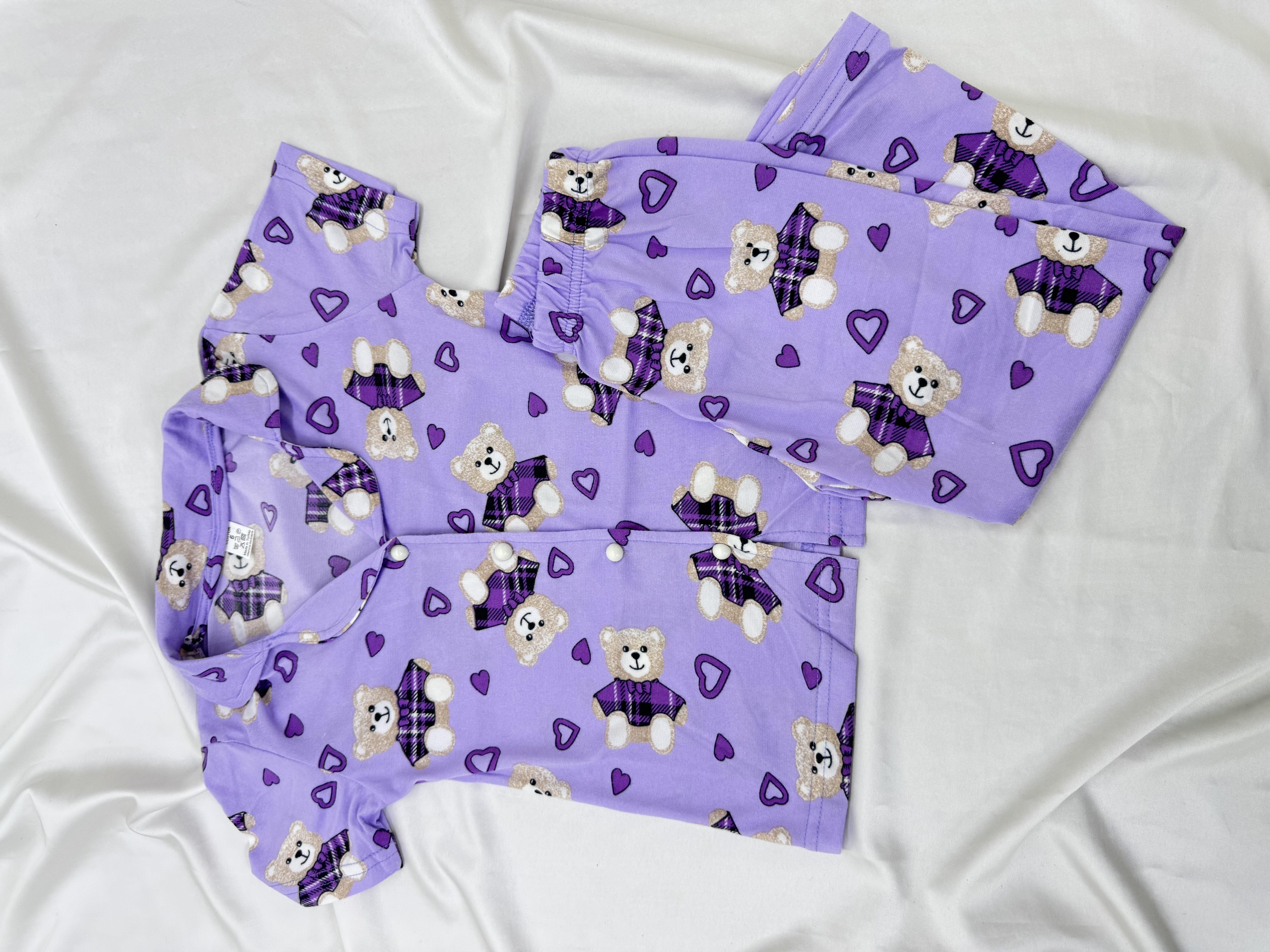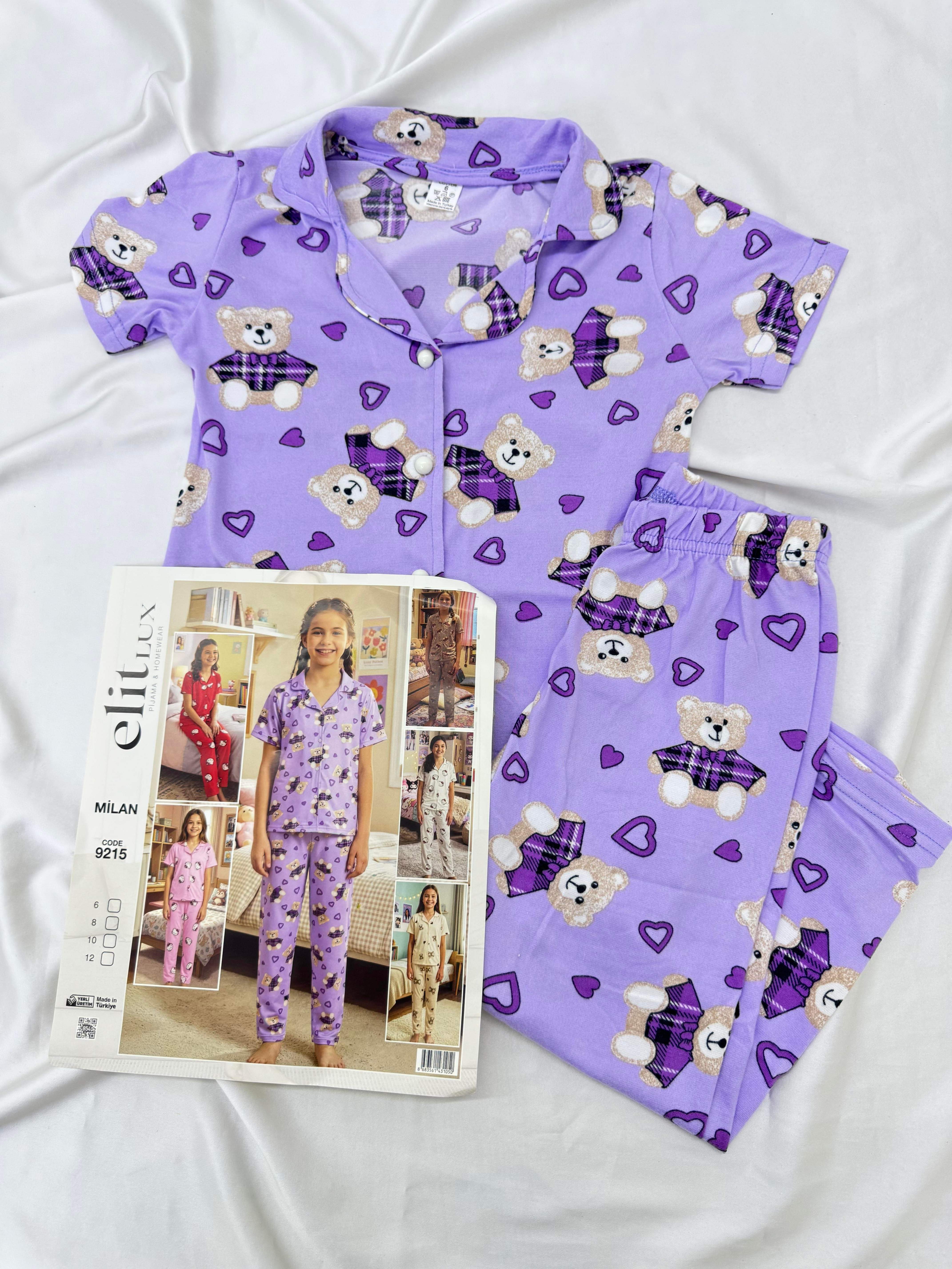 ç9215-milan kumaş gömlek yaka ayıcıklı kız çocuk takım-mor (ç9215)