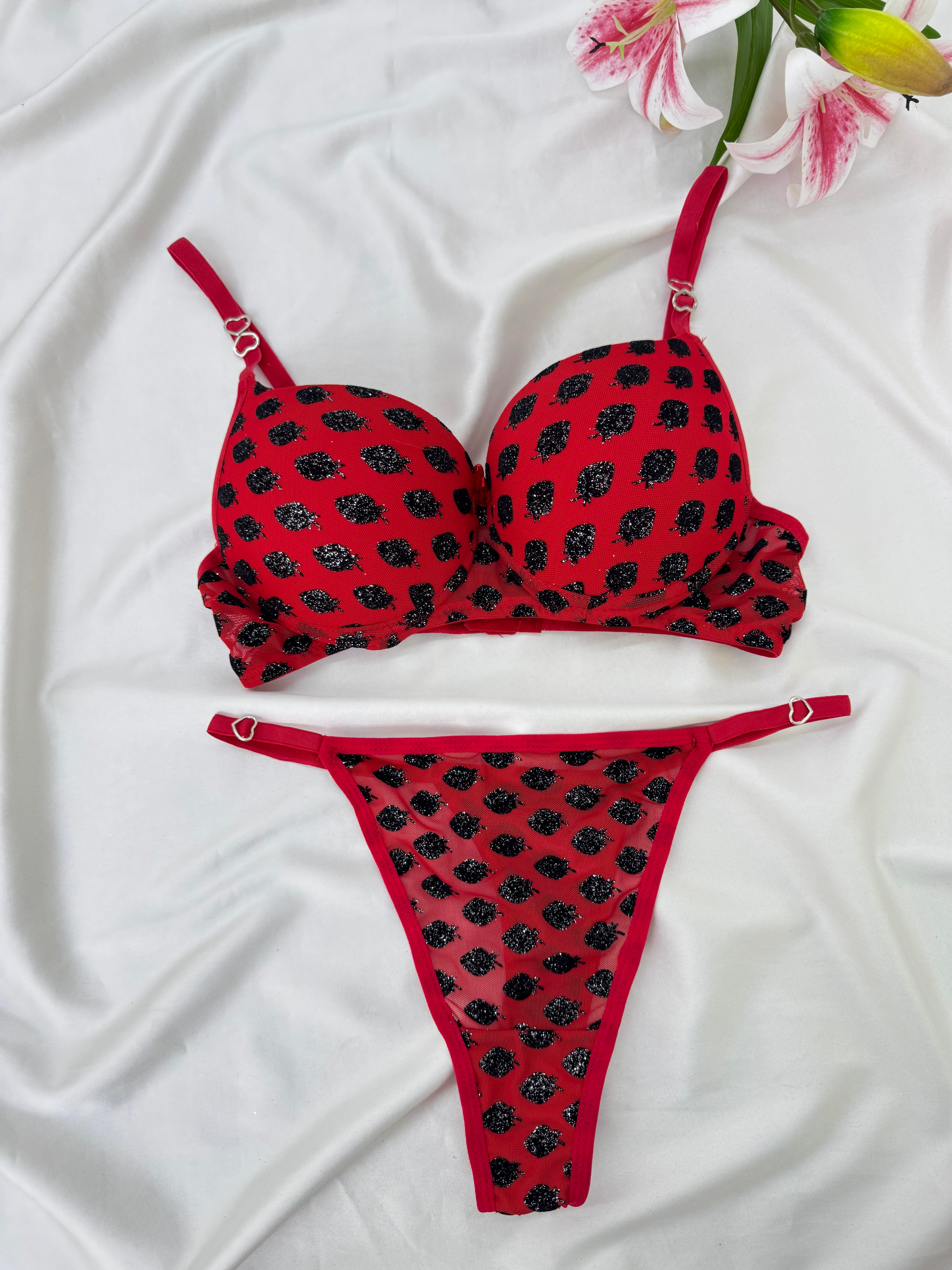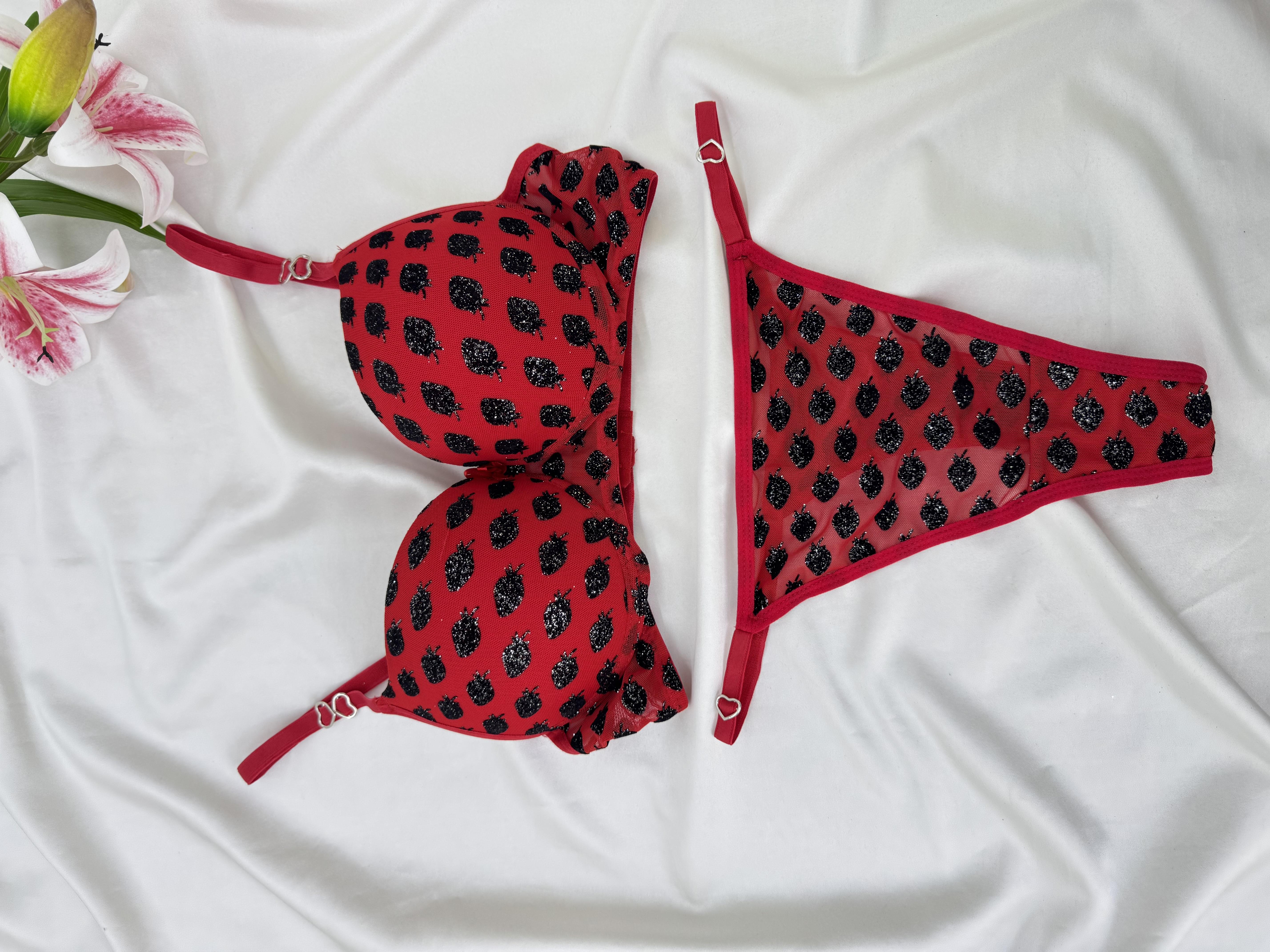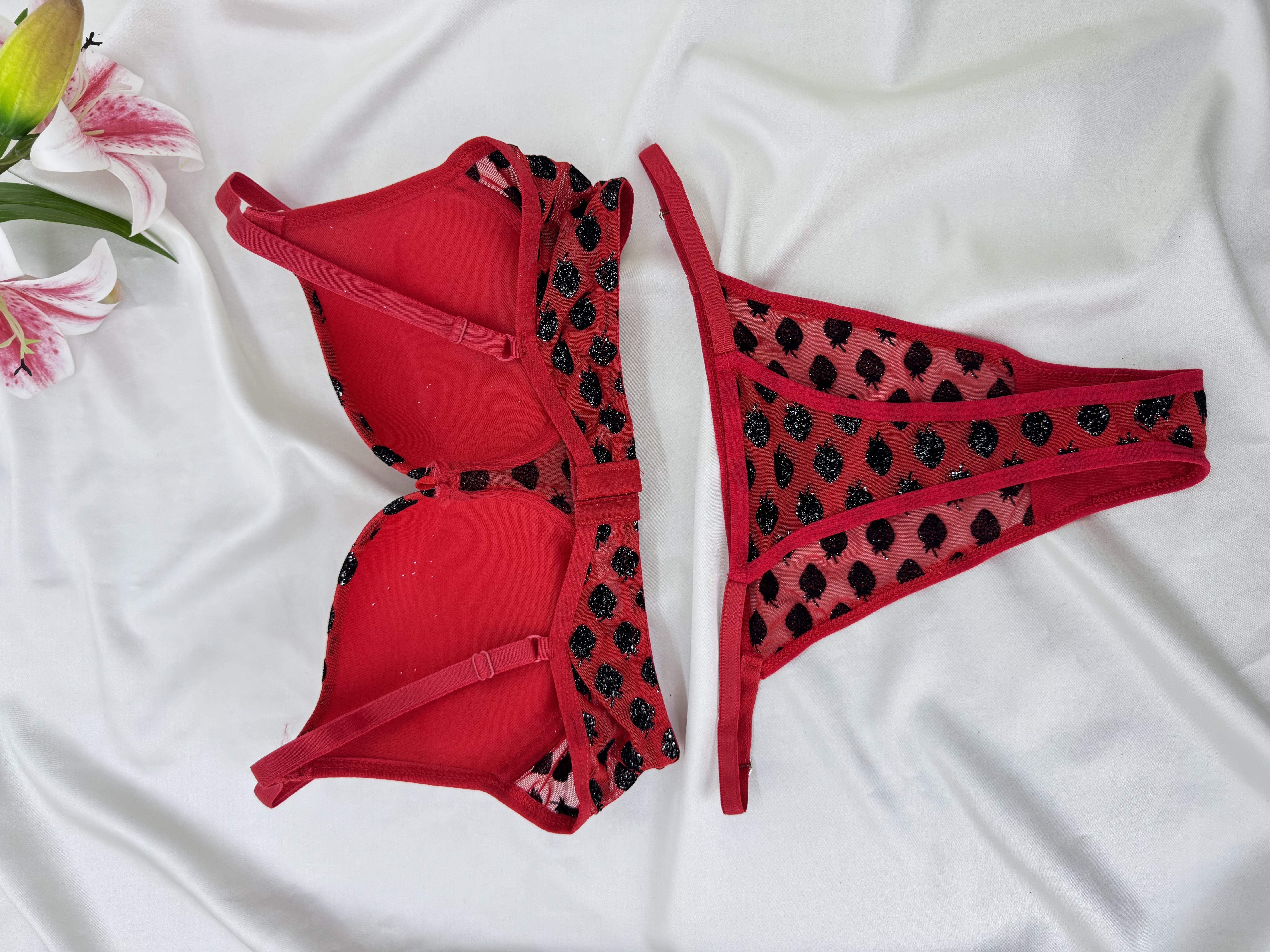 Ç9797 DESTEKLİ ÇİLEK BASKILI SÜTYEN TAKIMI-KIRMIZI (Ç9797)